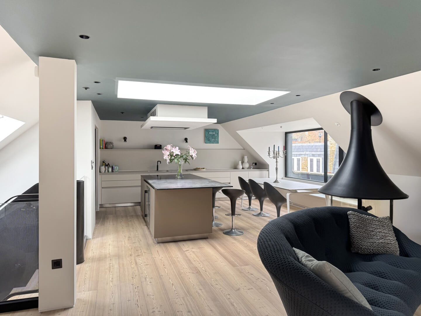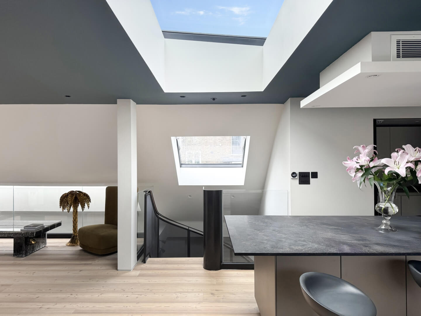 Ardor worked closely with the design team to create bespoke interiors, from a striking spiral staircase at the heart of the home to technical joinery that maximises space with elegance. The redesign of the terrace further enhanced the property, offering a seamless flow between indoor and outdoor living.