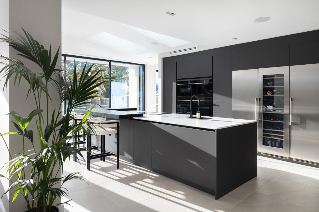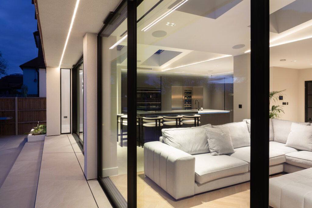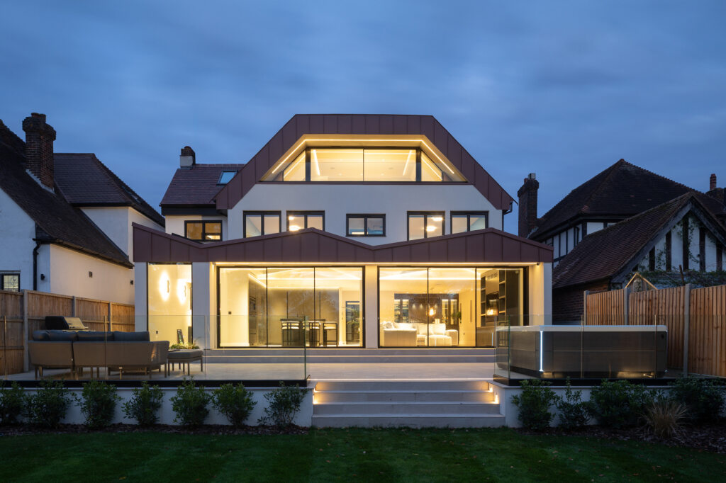 This detached home underwent a dramatic transformation from mock Tudor to contemporary modern. The vision: a spacious, light-filled family home blending smart technology with elegant design.